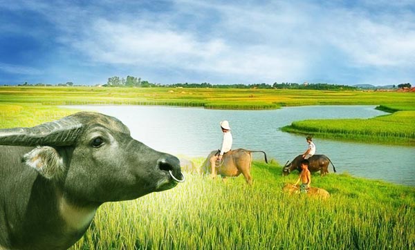 Vùng sông nước miền Tây phù hợp với con trâu chớ không phù hợp nuôi bò. Trâu bơi giỏi, sông rộng mênh mông cỡ nào, nó chở trên mình nó một người lừ lừ bơi qua sông ào ào. Muỗi tuy là nhiều đến nỗi “kêu như sáo thổi” nhưng con trâu cũng khôn lắm, nó có chiêu đối phó với muỗi hiệu quả cực kỳ. Ban ngày, nó xuống các ao, đìa, vũng mà dầm dưới đó, quậy cho bùn bám vào thân mình nó một lớp dày, chỉ còn sót lại có cái mặt với lỗ mũi. Sau đó nó lên bờ phơi nắng cho khô đi, lớp bùn đó cứng cứng, nhão nhão, bám chắc trên mình nó, đố muỗi nào chích nổi. Con bò thì không chịu nổi cái khắc nghiệt ở xứ này, bởi con bò không thích dầm mình xuống bùn như con trâu, mà tôi cũng chưa thấy con bò bơi bao giờ.