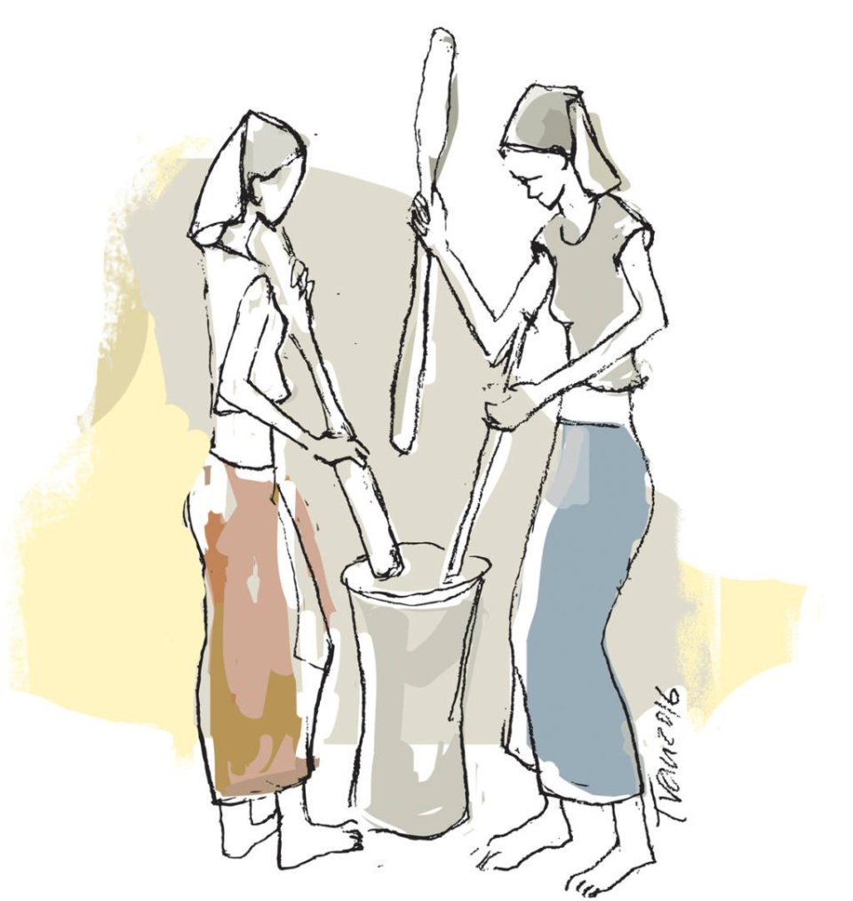 Vào khoảng Tháng Chín, Tháng Mười Âm Lịch, khi lúa ngoài đồng bắt đầu vào vụ gặt cũng là vào mùa cốm dẹp ở miền Tây. Thời gian này, tất cả các chợ xóm, chợ phường, chợ cóc, chợ lớn… đâu đâu cũng có những người phụ nữ Khmer da ngăm đen, đầu đội chiếc khăn rằn màu nâu đỏ, giấu một nửa khuôn mặt khuất dưới vành nón lá trắng, đội từng thúng cốm dẹp ra ngồi bán ở chợ. Cốm dẹp bán ở chợ là loại cốm dẹp mới quết, được đong bán từng lon sữa bò, chưa trộn đường và dừa, người mua đem về phải chế biến thêm mới trở thành thứ cốm dẹp ngon lành ăn được.