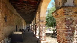 Bao quanh khu nhà thờ là bức tường xi măng được trồng phủ ngoài rất nhiều loại xương rồng khổng lồ. Sau khi mua vé $9/người vào cổng, chúng tôi bắt đầu lượn vòng quanh khu vực đổ nát này. Khu đất rất là rộng, Thánh đường chính xây bằng đá trắng và vôi vẫn còn nguyên các bức tường, các dãy phòng bên trong với rui mè