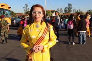 Trong khi tất cả những gương mặt người Việt các đoàn diễn hành đều vui tươi, hồ hỡi thì nét mặt của thành viên đoàn Pháp Luân Công thật đúng với mấy chữ “Chân- Thiện- Nhẫn”, nhìn rất hiền lành, thánh thiện, nụ cười nhẹ, ánh mắt trầm lắng, cam chịu và đầy nhẫn nhục. Thành viên Pháp Luân Công là những người bị nhà cầm quyền Trung cộng đàn áp khốc liệt, tàn nhẫn không kém người Tây Tạng, dù họ là người Hán chánh tông. Họ phải chạy trốn đến các quốc gia tự do văn minh xin tỵ nạn mà lòng luôn đau đáu nhìn về quê nhà, nơi gia đình, họ hàng của họ vẫn còn ở đó. Nhìn họ, tự dưng tôi thấy mắt cay cay dâng trào đồng cảm, đều cùng là thân phận người tỵ nạn.