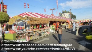 Điều đầu tiên đập vô mắt khách tham quan là không khí Tết rất Việt Nam. Từ những chậu bông mai, lan, cúc, trúc uốn cành theo kiểu bonsai, cây phát tài xanh mướt, con lân, phong pháo, dây treo may mắn, phong bao đỏ, đồ chơi trẻ em làm theo kiểu thủ công, nón lá, quạt giấy đến hàng cao cấp hơn là thư pháp và tranh vẽ. Đặc biệt không thể thiếu dãy bán “hàng xén” nhà quê với mái lợp lá dừa nước khô rủ rủ ngọn lá dừa xuống phía trước quầy hàng. Tôi rất ngạc nhiên không hiểu chủ nhân các gian “hàng xén” này kiếm đâu ra lá dừa nước khô, năm nào cũng lợp mái cho gian hàng của mình giữ nguyên màu sắc chân quê miền Tây Nam bộ?