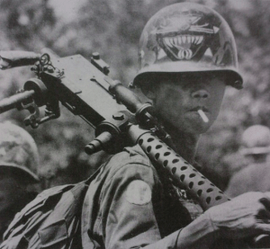 Trong khi tìm kiếm hình ảnh minh họa cho status thì tôi nhìn thấy bức ảnh trắng đen chụp người chiến sĩ vô danh mặc quân phục Biệt Ðộng Quân này. Có những ảnh chụp lực lượng Biệt Ðộng Quân màu sắc tươi mới hơn, rõ ràng hơn vui vẻ hơn, nhưng tôi thích bức ảnh trắng đen này. Bức ảnh ghi lại khoảnh khắc thoáng qua sau trận đánh của người chiến sĩ vô danh: Cái mũ sắt có huy hiệu BÐQ sụp xuống che một nửa khuôn mặt đen đúa còn ám màu khói thuốc súng bên má phải, nét mặt bình thản, miệng ngậm điếu thuốc, vai vác khẩu M30 (Súng “thứ dữ” nhe), hậu cảnh là các đồng đội của anh ta. Bức ảnh không màu mè, không có sự sắp xếp trước, mà nó toát lên cái thần thái khí khái “Gieo Thái Sơn nhẹ tựa hồng mao” (Chinh phụ ngâm – Ðặng Trần Côn, Ðoàn Thị Ðiểm).