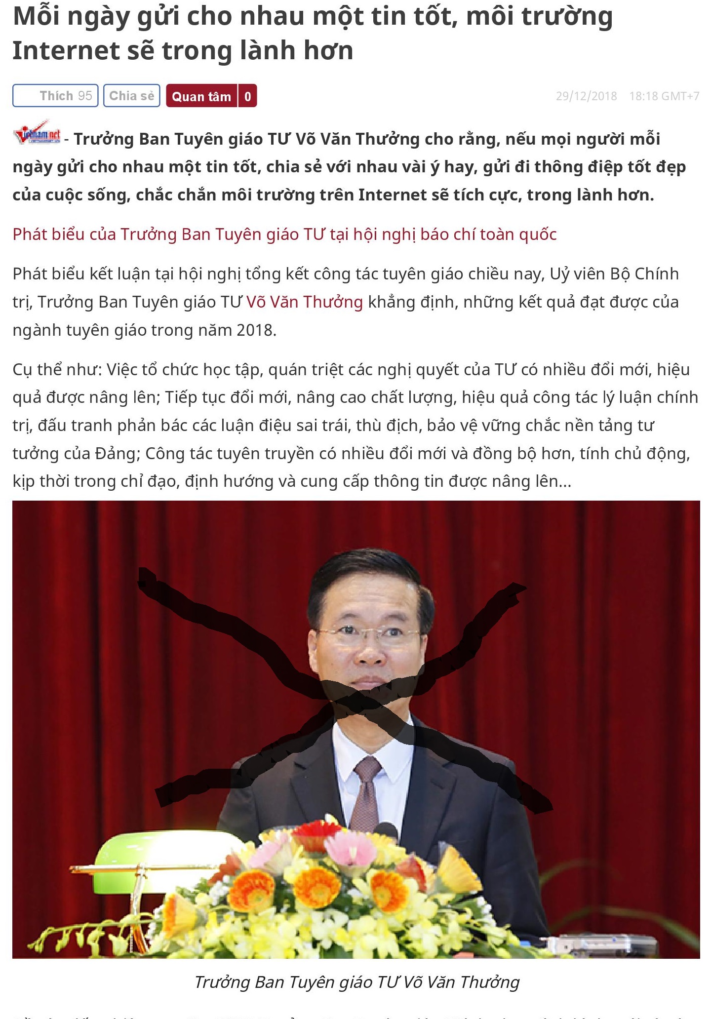 Thực hiện chỉ đạo của “đồng chí” Võ Văn Thưởng (Trưởng Ban Tuyên giáo Trung ương đảng cộng sản Việt Nam) là “mọi người mỗi ngày gửi cho nhau một tin tốt” để “ngăn chặn, đẩy lùi thông tin sai, mang tính đồn đoán, xuyên tạc” của bọn mạng xã hội; do cả tuần nay iem bận rộn loi nhoi ăn Tết, bây giờ iem mới có thời gian điểm báo và gởi cho “đồng chí” Thưởng hàng loạt “tin tốt” trong tuần đây: