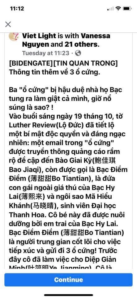 Vào buổi sáng ngày 19 tháng 10, tờ Luther Review (Lộ Đức) đã tiết lộ một bí mật độc quyền và đáng ngạc nhiên: một email trong “ổ cứng” được truyền thông quảng cáo rầm rộ đề cập đến Bào Giai Kỳ ( Bao Jiaqi,) còn được gọi là Bạc Điềm Điềm (Bo Tiantian,) là đứa con gái ngoài giá thú của Bạc Hy Lai và ngôi sao Mã Hiểu Khánh, sinh viên Đại học Thanh Hoa. Cô bé này đã được nuôi dưỡng bởi em trai của Bạc Hy Lai. Bạc Điểm Điềm (Bo Tiantian) là người trung gian cốt lõi cho việc tiếp xúc và gửi đi 3 ồ cứng! Trước đây cô đã làm việc cho Diệp Giản Minh nh(It BA Ye Jianming). Cô là giám đốc phụ trách các vấn đề quốc tế của Diệp Giản Minh, đối tác kinh doanh của Biden và là cựu liên lạc viên của Bohai Financial Holdings Huaxin Energy. Cô sở hữu một căn hộ ở Pangu Daguan, Bắc Kinh. Hãng thông tấn Lutheran tiết lộ thêm rằng Bạc Hy Lai đã bị Biden phản bội, để lấy lòng Tập, Biden đã đưa đoạn ghi âm của Bạc Hy Lai cho Tập Cận Bình. Lo sợ rằng Biden sẽ cùng ông Tập hủy hoại bản thân sau khi ông lên nắm quyền, gia tộc Bạc, gia tộc Tăng và gia tộc Giang đã hợp tác để đưa ra ba ổ cứng này. Những ổ cứng này cuối cùng đã được lật lại nhiều lần (Tức sao chép ra nhiều bản. TPT chú thích cho người đọc dễ hiểu) và được giao cho luật sư riêng của Tổng thống Trump là Giuliani!